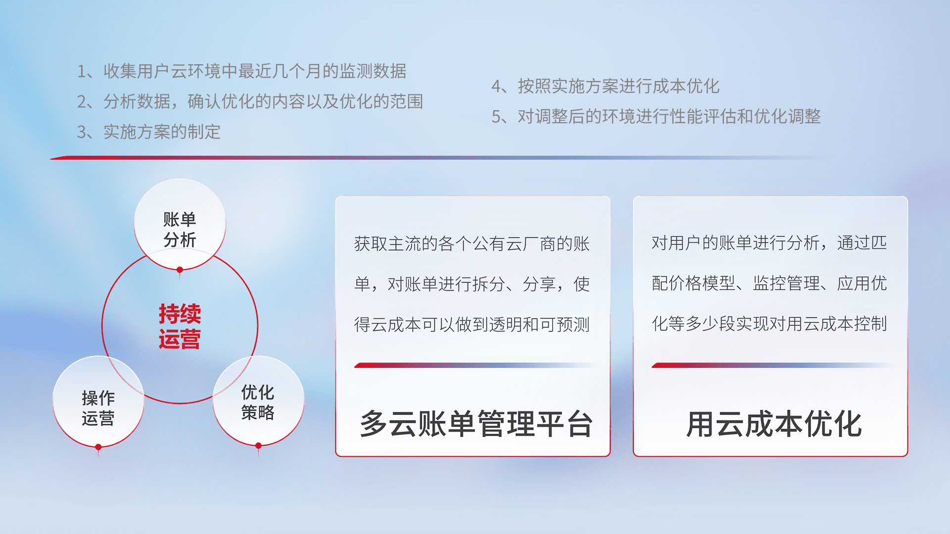 通过多云纳管,,,以统一的资源数据模型把客户的云资源进行抽象和封装,,,,进而实现对多云资源的统一操作,,,,保障云资源管理的可靠性、、、、稳定性与可用性。。。。量身定制化运维内容,,,,配置、、、、开发运维、、、补丁管理、、备份、、、、监控、、、、认证和访问管理、、、、审计和日常巡检等,,保障在用云过程中的可靠度,,稳定度以及高可用率。。。。